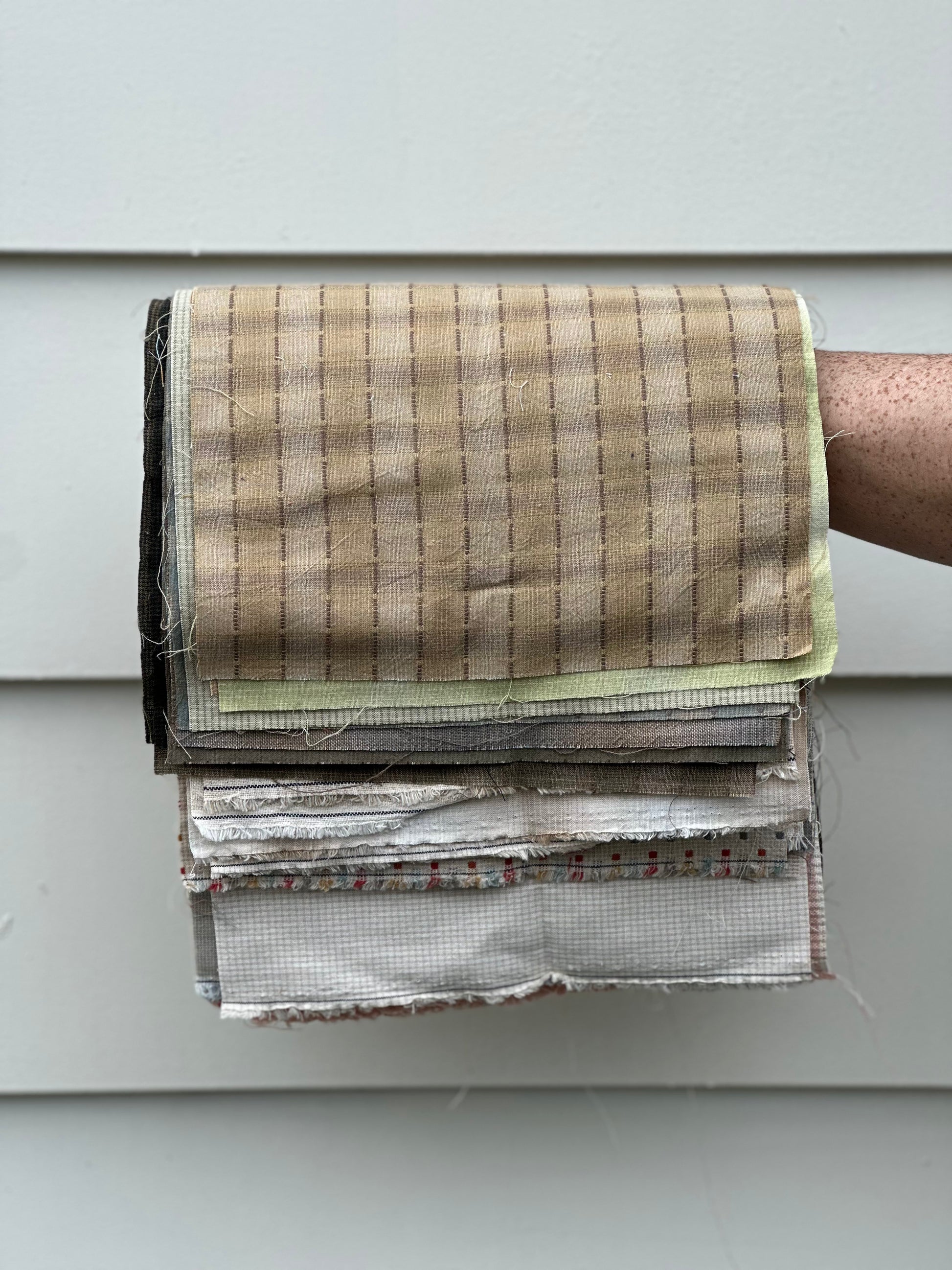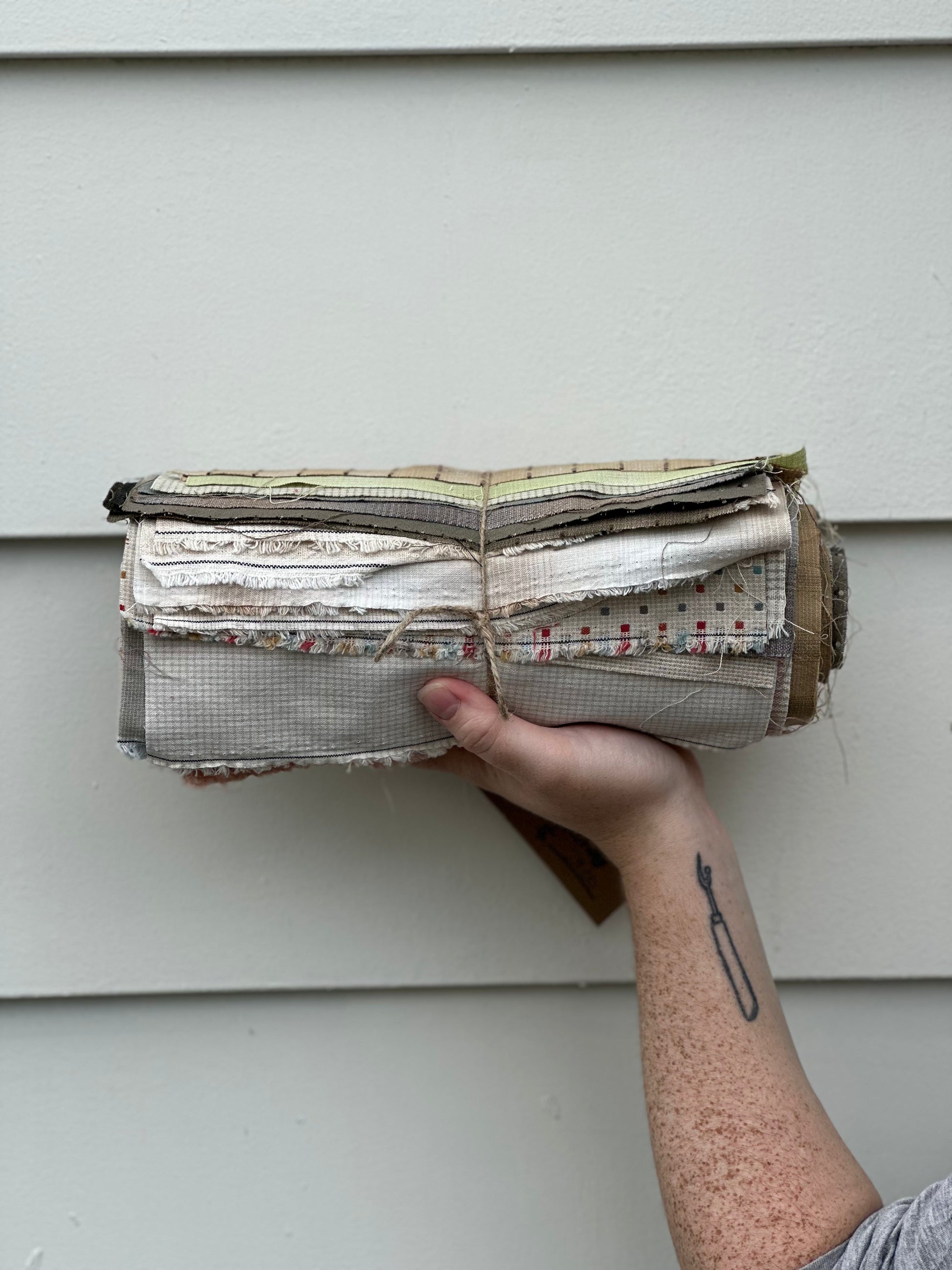 A cozy little bundle of fat quarters and smaller. Scrap-sized treasures - perfect for sparking your next thrifty, one-of-a-kind creation.